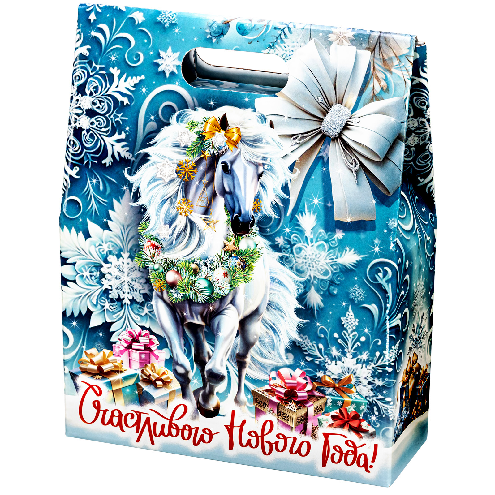Новогодние сладкие подарки с изображением символа года - это нестареющая классика. Подарочный набор “Белоснежная” - это идеальное сочетание креативной подарочной упаковки и вкусного разнообразного конфетного состава. Подарок представляет собой небольшую картонную сумочку с изображением белой волшебной лошадки на фоне зимнего леса. Снизу красуется контрастное поздравление, а наверху есть удобная ручка. Внутри содержатся вкусные лакомства, с которыми каждое праздничное чаепитие приобретет еще более торжественное и веселое настроение. Подарочный набор - универсален. Его можно вручить как ребенку, так и взрослому.